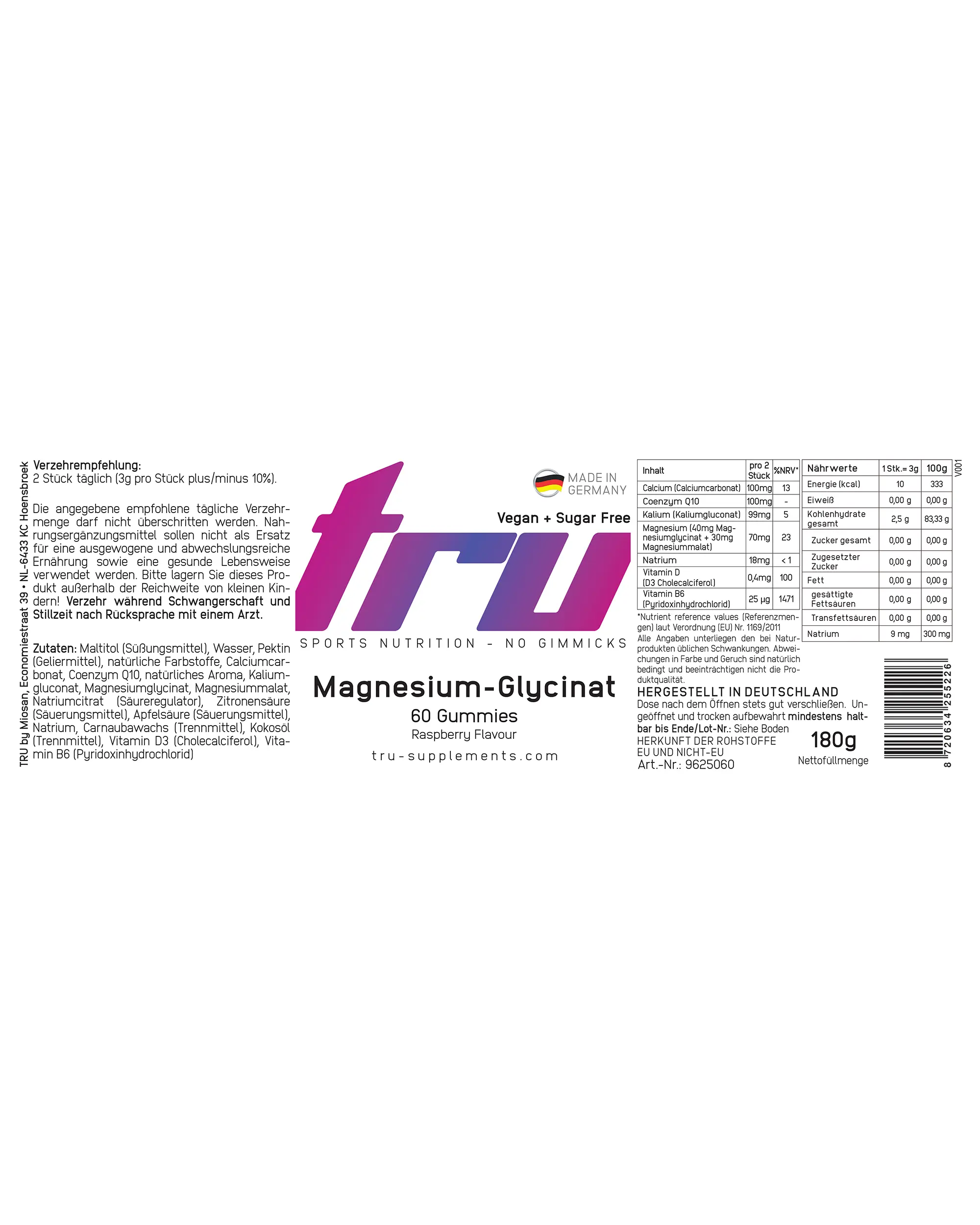 Produktinformationen "TRU Magnesium Glycinat Gummies - 60 Gummies - Raspberry Geschmack | TRU"
