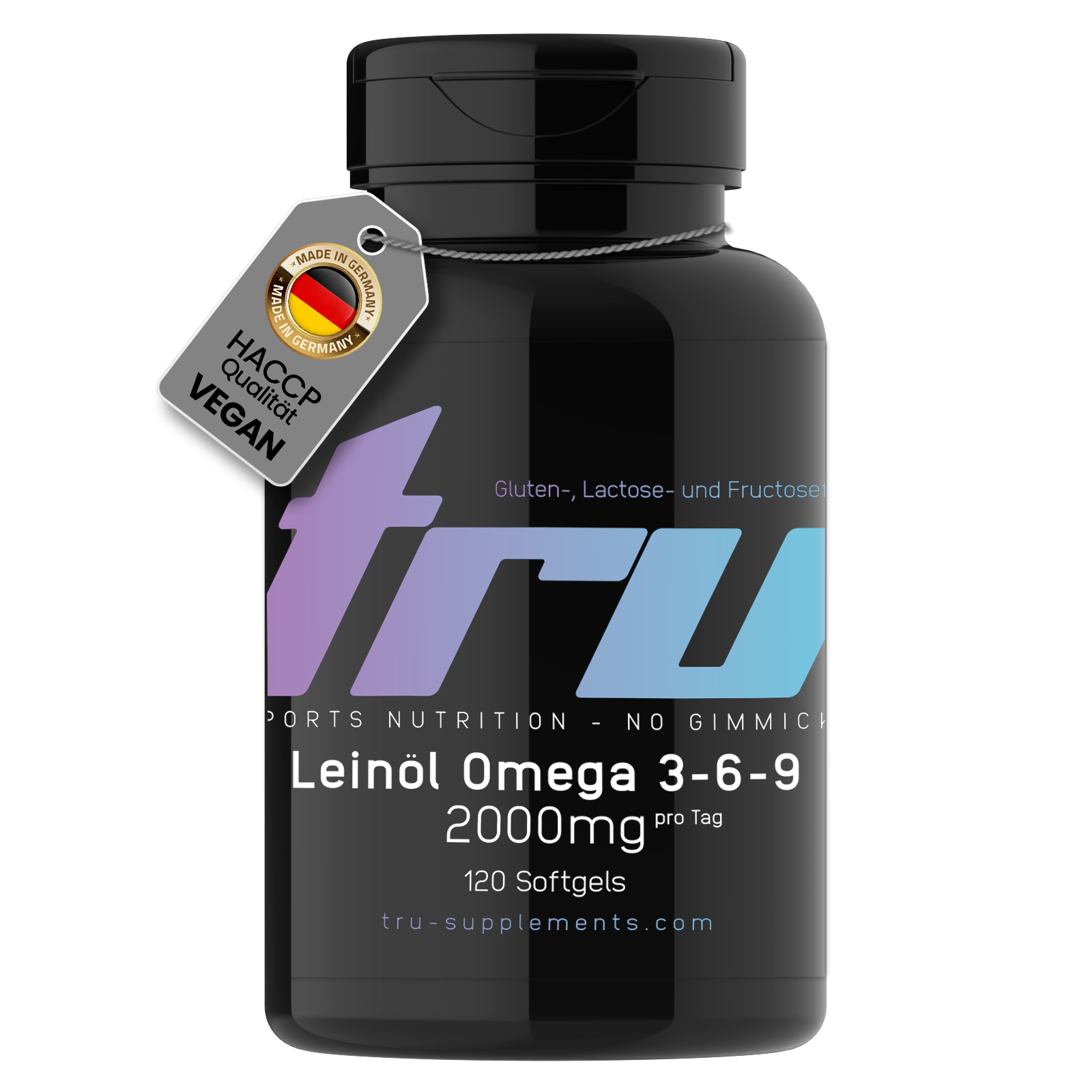 - Beschreibung TRU Flachsöl Omega 3-6-9 liefert pro Tagesverzehr (2 Softgels) 2000 mg kaltgepresstes Flachsöl – eine pflanzliche Quelle f… Mehr